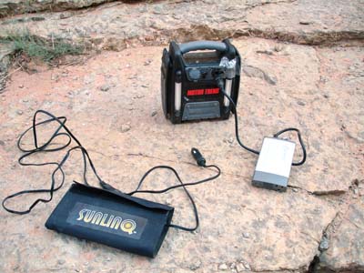 With today's recharable cameras, ipods, and gizmos, low wattage power is becomming critical. Bringing extra double A batteries is not enough. After lots of reasearch and testing, we came upon a system that worked relatively well. It's not perfect, but it did the job.